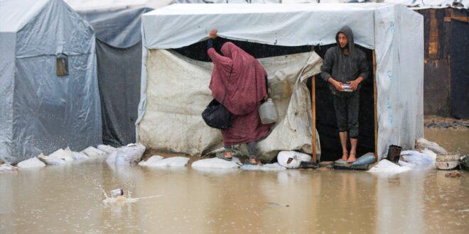 وتسببت رياح قوية وأمطار غزيرة، في غرق عدد من خيام النازحين وتطاير أخرى بمناطق متفرقة من قطاع غزة، خاصة في خان يونس، بفعل منخفض جوي يضرب القطاع، ما فاقم معاناة عشرات آلاف العائلات الفلسطينية.