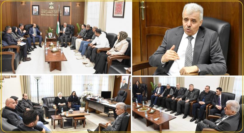 بحث وزير التربية والتعليم العالي أ. د. أمجد برهم، في مكتبه، مع عدد من رؤساء وممثلي الجامعات والكليات الفلسطينية سبل تعزيز التعاون لخدمة قطاع التعليم العالي وتجويد مُخرجاته.