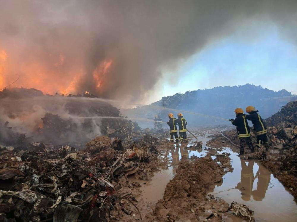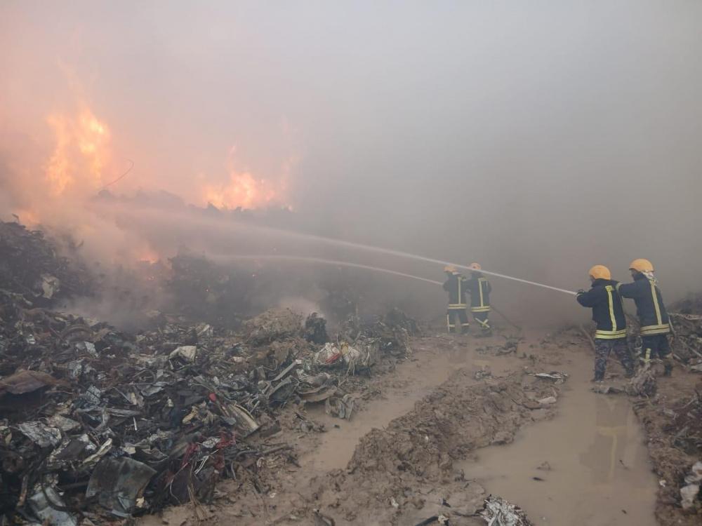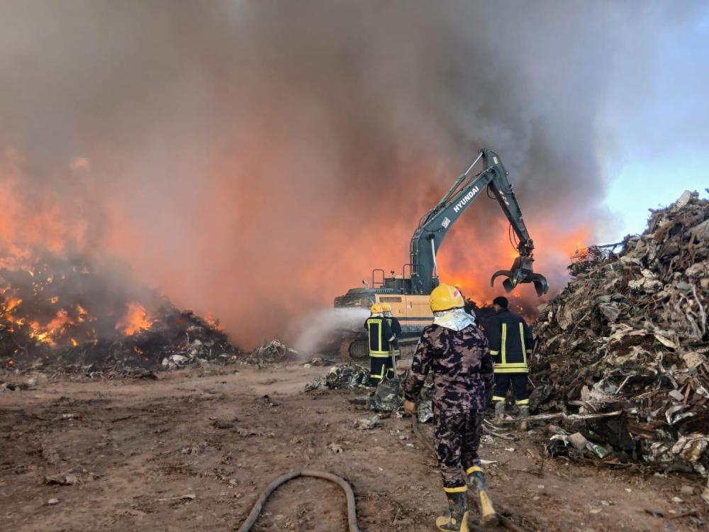 وأشار الدفاع المدني إلى أن ارتفاع الخردة في بعض المواقع يتجاوز 15 مترًا، وتحتوي على مواد بلاستيكية وكيماوية ناتجة عن مخلفات المركبات المستخدمة في منتجات المصنع، ما يزيد من صعوبة عمليات الإطفاء.