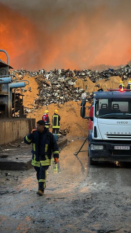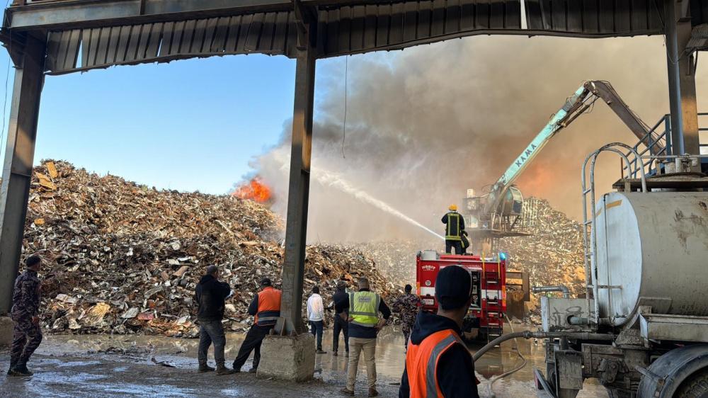 ما زالت طواقم الدفاع المدني، منذ نحو 16 ساعة متواصلة، وبمساندة من المؤسسة الأمنية والأهالي، تعمل على التعامل مع حريق هائل اندلع في مصنع للخردة بمحافظة أريحا.