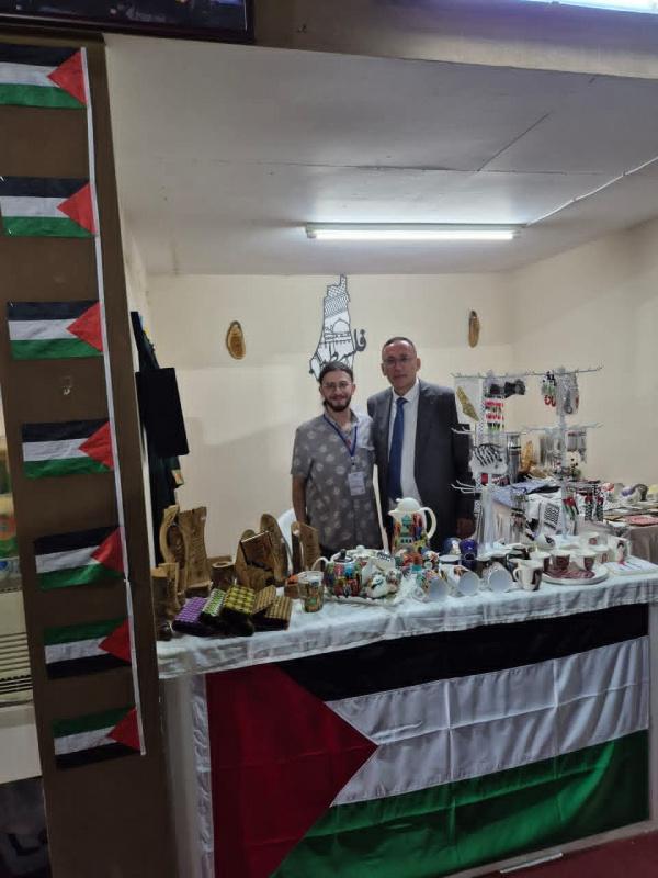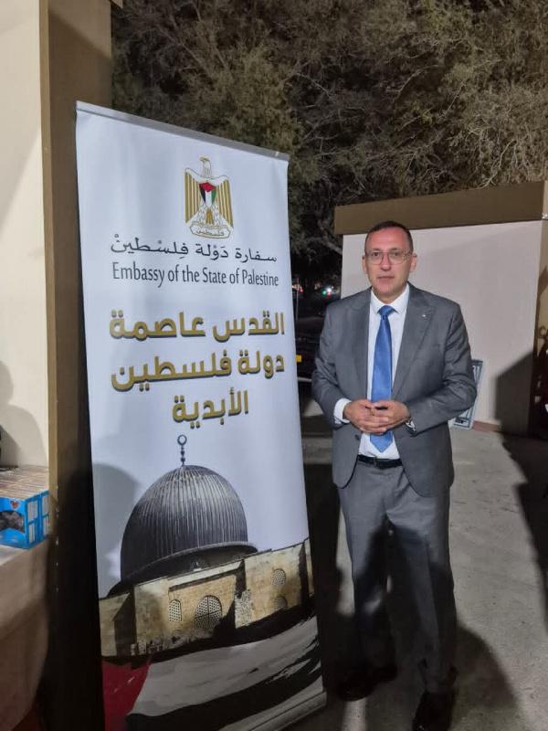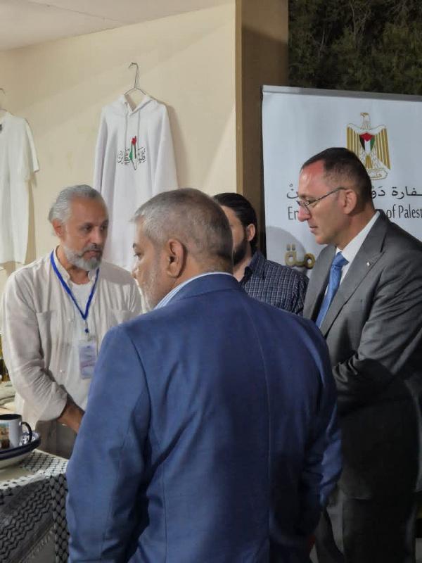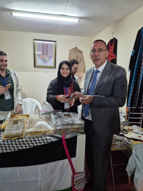 كما عبّر عن شكره للمشاركين الفلسطينيين من أبناء الجالية، ولزملائه في السفارة الذين أشرفوا على تحضير الجناح الفلسطيني.