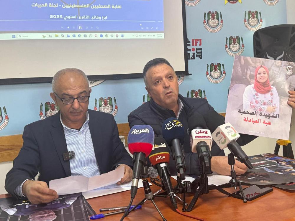 تؤكد لجنة الحريات في نقابة الصحفيين الفلسطينيين، أن مجمل الجرائم والانتهاكات الموثقة خلال عام 2025: