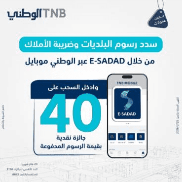 أعلن البنك الوطني عن إطلاق حملة تحفيزية جديدة تهدف إلى تشجيع المواطنين على تسديد رسوم البلديات وضريبة الأملاك إلكترونيا، وذلك من خلال تطبيق الوطني موبايل عبر منصة E-SADAD.