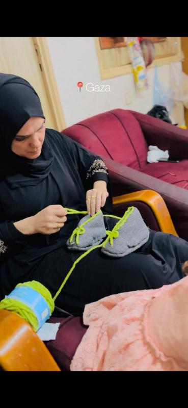 فمن علب الأناناس صنعت فازات رائعة، مستخدمة الجزء الداخلي من الفاكهة ليكون عنصرًا جماليًا يضفي روحًا طبيعية على المكان. ومن كراتين المساعدات، أنشأت خزانة صغيرة وصناديق لعب للبنات، بينما أعادت الحياة إلى فخار مكسور ليصبح زخارف تراثية تضيف لمسة فلسطينية للبيوت والخيم. حتى الملابس التالفة والبطانيات المحروقة لم تهرب من لمستها الإبداعية، إذ حولت بعضها إلى أحذية صغيرة للأطفال وعروسات، كل قطعة تحكي قصة صمود وإبداع تحت أصعب الظروف.