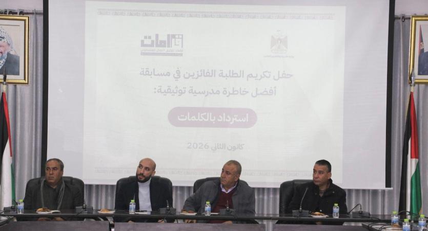 كرّمت وزارة التربية والتعليم العالي، ومؤسسة قامات لتوثيق النضال الفلسطيني، اليوم الأربعاء، الطلبة الفائزين في مسابقة أفضل خاطرة مدرسية وطنية توثيقية حملت عنوان: "استرداد بالكلمات"، وجاءت استلهاماً من فيلم قامات الوثائقي "استرداد مؤجل" للمخرج الأسير عبد الله معطان، الذي يوثق معاناة ذوي الشهداء المحتجزة جثامينهم في ثلاجات الاحتلال.