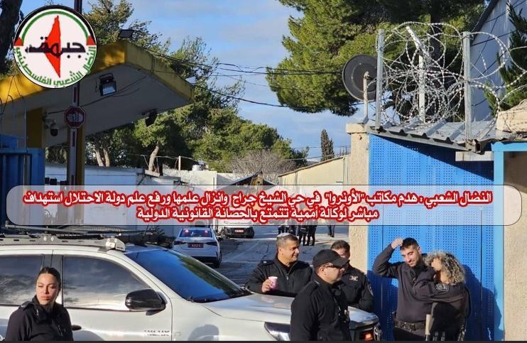 النضال الشعبي: هدم مكاتب "الأونروا"ورفع علم دولة الاحتلال استهداف مباشر لوكالة أممية تتمتع بالحصانة القانونية الدولية