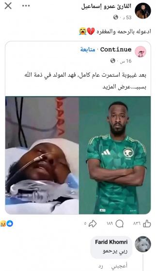 وأكدت المصادر أن جميع الأخبار التي تتحدث عن وفاة فهد المولد غير صحيحة ولا أساس لها من الصحة، وأنه حتى الآن لم تصدر أي جهة رسمية – سواء من العائلة أو من الجهات الصحية في السعودية أو الإمارات – إعلانًا يفيد بوفاته. بل على العكس، العائلة طالبت الجمهور بالتوقف عن تداول شائعات غير دقيقة واحترام خصوصيتها ودعاء اللاعب بالشفاء.