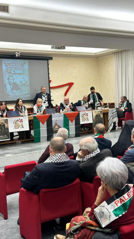 وجاءت الفعالية بتنظيم من إقليم حركة فتح – إيطاليا، وبمشاركة سفارة دولة فلسطين لدى إيطاليا، وبحضور واسع من أبناء الجالية الفلسطينية والعربية، إلى جانب شخصيات سياسية وحزبية ونقابية وبرلمانية إيطالية.