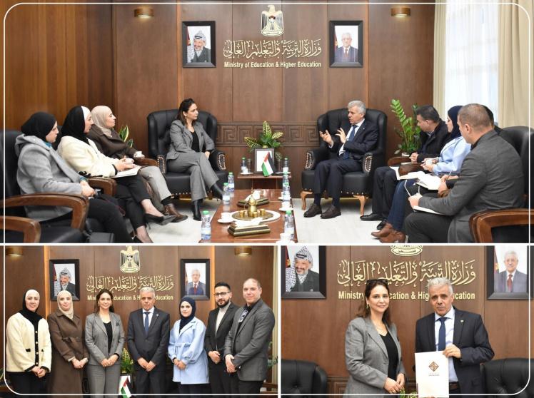 بحث وزير التربية والتعليم العالي أ. د. أمجد برهم، في مكتبه، اليوم، مع المدير العام لصندوق النفقة الفلسطيني أ. فاطمة المؤقت آفاق التعاون المشترك لخدمة الطلبة والقطاع التعليمي.