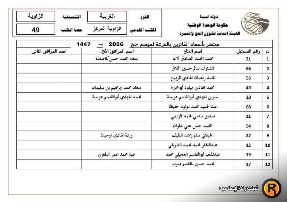 نتائج أسماء الفائزين في قرعة الحج ليبيا 2026 عن مكتب الزاوية الحرشة