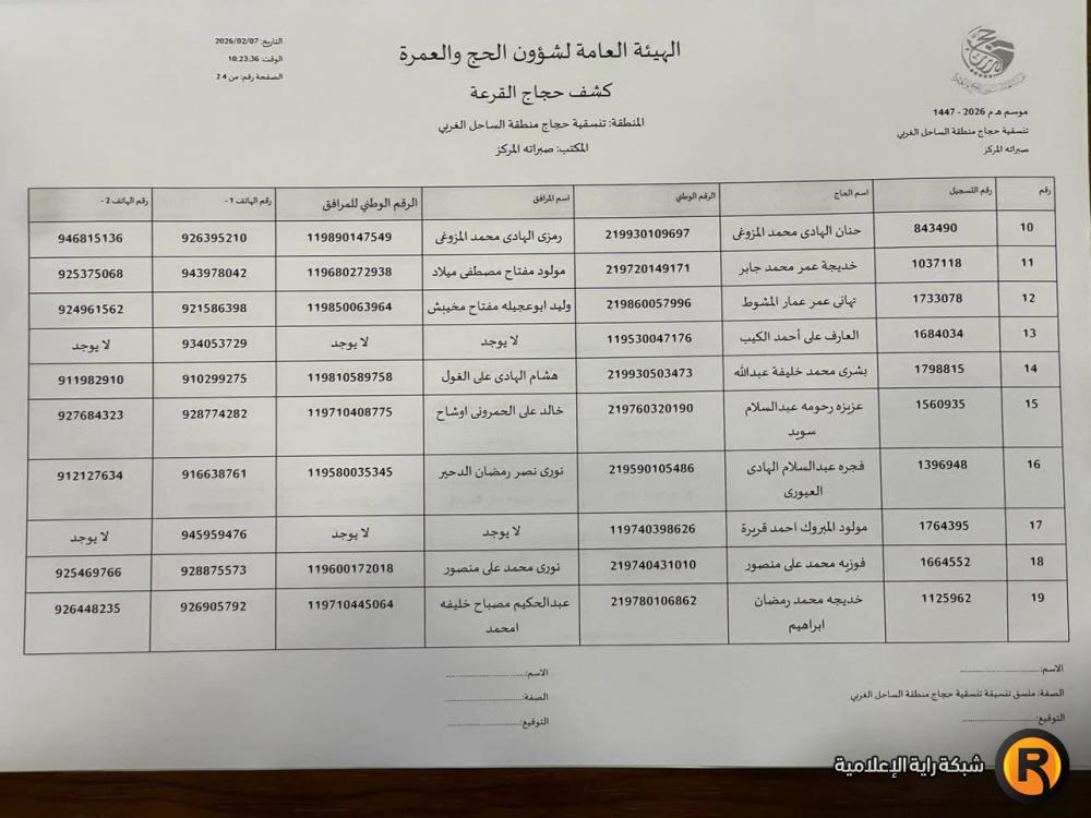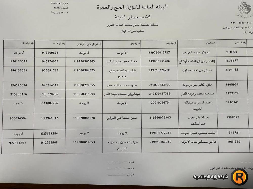 نتائج أسماء الفائزين في قرعة الحج ليبيا 2026 عن منطقة زوارة
