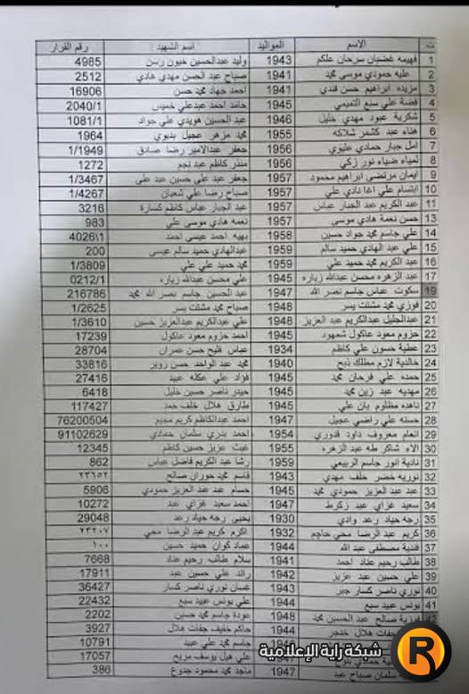 تنويه: قوائم الأسماء بالصور في الأسفل: