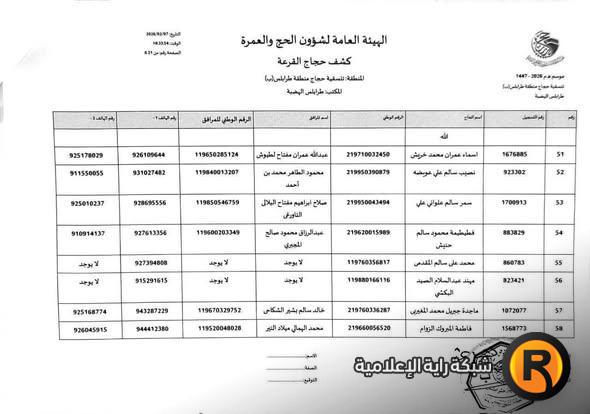 كشوفات أسماء حجاج ليبيا 2026 حسب المناطق