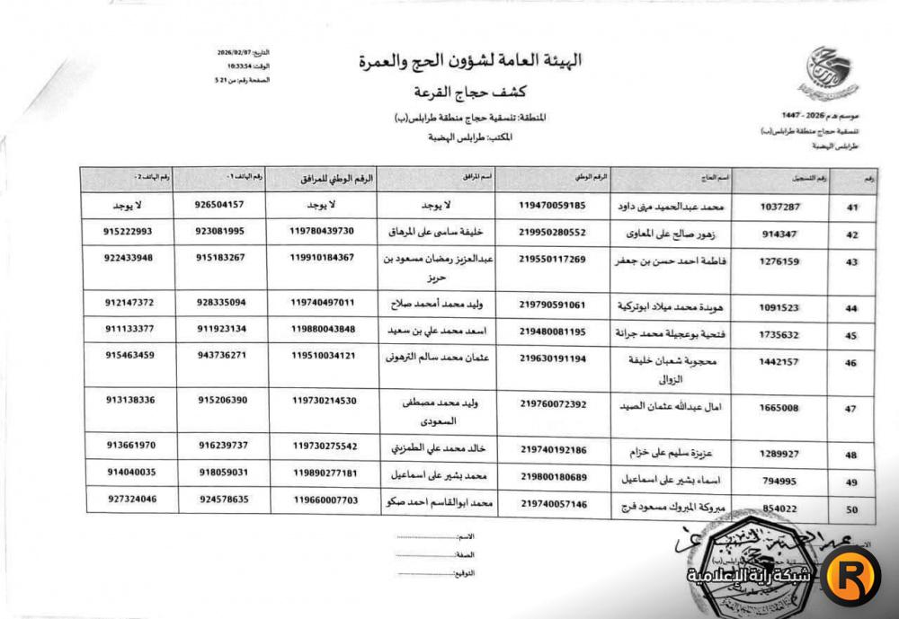 نتائج أسماء الفائزين في قرعة الحج ليبيا 2026 حجاج طرابلس حي الاندلس