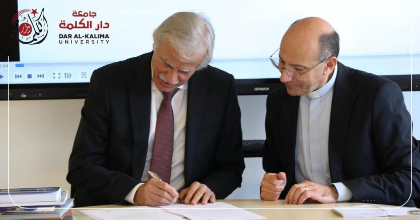 ووقّع الاتفاقية رئيس المكتبة الوطنية الفلسطينية الأستاذ الدكتور مروان عورتاني، ومؤسس ورئيس جامعة دار الكلمة القس الدكتور متري الراهب، وذلك بحضور عدد من أعضاء مجلس إدارة المكتبة الوطنية والطاقم الأكاديمي والإداري من الجانبين.