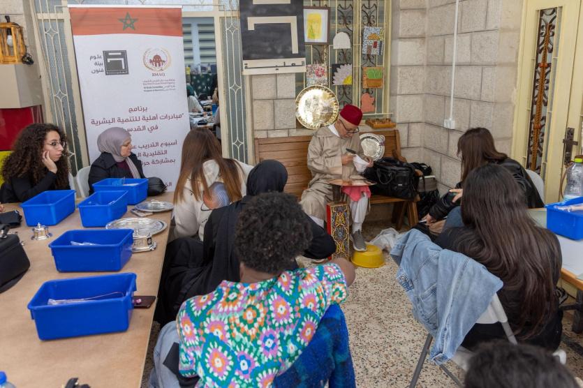ويستضيف هذا الأسبوع التدريبي "مؤسسة العلية" بمدينة القدس، بمشاركة نخبة من الحرفيين المغاربة المتخصصين في فنون النسيج، والنقش على الخشب، وصياغة الفضة، ويهدف إلى نقل الخبرات المغربية العريقة إلى الحرفيين المقدسيين والشباب المهتمين بالمهن التراثية.