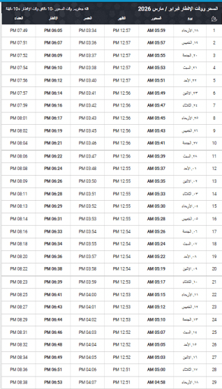 لمتابعة الإمساكية الرسمية المحدثة يومياً: