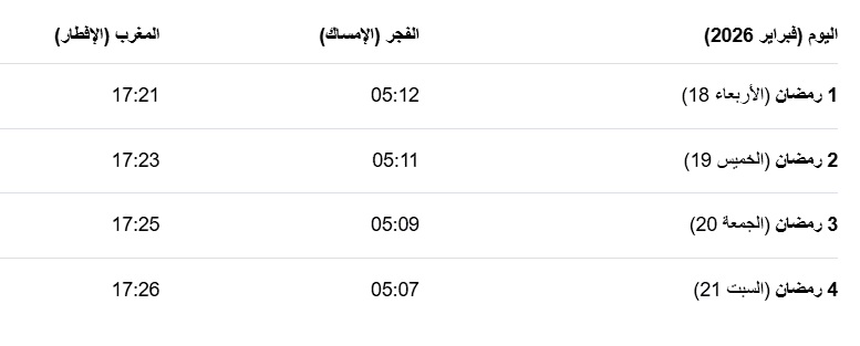 إليك جدول تقريبي لمواقيت الأيام الأولى في العاصمة فيينا وفقاً للحسابات الفلكية: