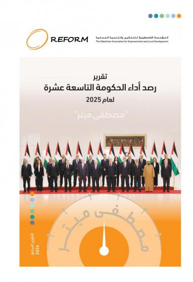 أصدرت المؤسسة الفلسطينية للتمكين والتنمية المحلية—REFORM تقريرها السنوي السابع المتخصص برصد أداء الحكومة الفلسطينية التاسعة عشر "مصطفى ميتر"، وركزَّ التقرير، بنسخته السابعة، على قياس مدى تنفيذ الحكومة لالتزاماتها التي أعلن عنها رئيس الحكومة التاسعة عشر في خطاب الرد على كتاب تكليفه رئيساً للوزراء، وَفحَص سرعة استجابة الحكومة بوزاراتها المختلفة، لاسيما الخدماتية منها، على استفسارات المواطنين حول خدماتها التي تقدمها. كما رصد التقرير زيارات الوزراء (أعضاء مجلس الوزراء)، وجولاتهم التفقدية للمديريات في المحافظات والاطلاع على سير العمل فيها على مدار العام 2025. واستعرض التقرير انطباعات الجمهور حول أداء الحكومة وفقا لاستطلاع رأي عام الذي أجرته المؤسسة في نهاية العام 2025 من خلال شركة متخصصة باستطلاعات الرأي.
