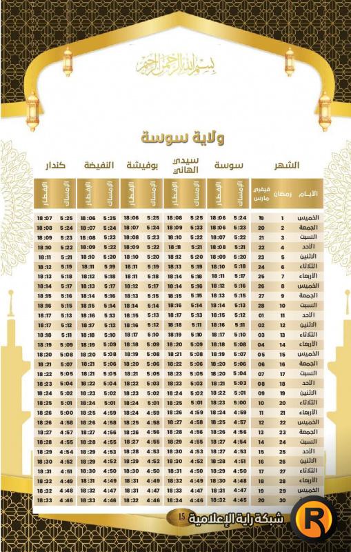 إمساكية رمضان 2026 في جميع ولايات تونس