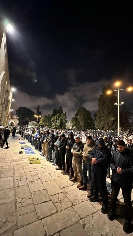 وقالت محافظة القدس، في بيان مقتضب، إن 60 ألف مصلٍ أدوا صلاتي العشاء والتراويح في رحاب المسجد الأقصى، رغم القيود والإجراءات المشددة التي فرضتها قوات الاحتلال الإسرائيلي على دخول المصلين.