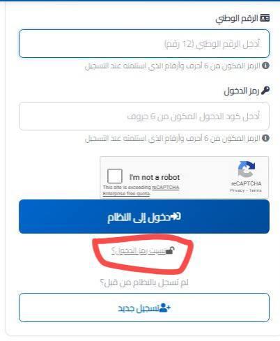 قم بالضغط على "نسيت رمز الدخول" في واجهة المنظومة.