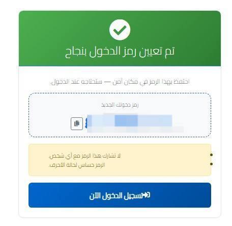ج: اضغط على جملة "نسيت رمز الدخول" في الصفحة الرئيسية، أدخل رقمك الوطني، وسيصلك كود (OTP) على هاتفك. بعد إدخال الكود، سيظهر الرمز الجديد على الشاشة مباشرة؛ تأكد من تصويره أو كتابته فوراً لأنه لن يصلك في رسالة نصية.
