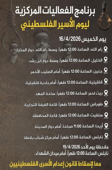 برنامج الفعاليات المركزية ليوم الأسير الفلسطيني