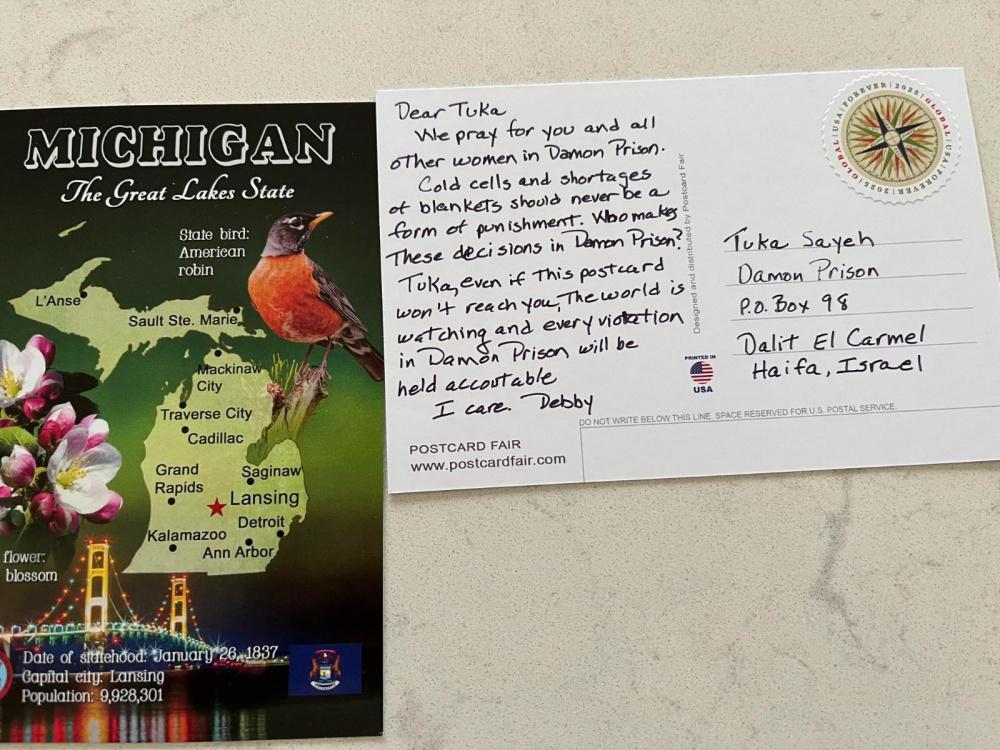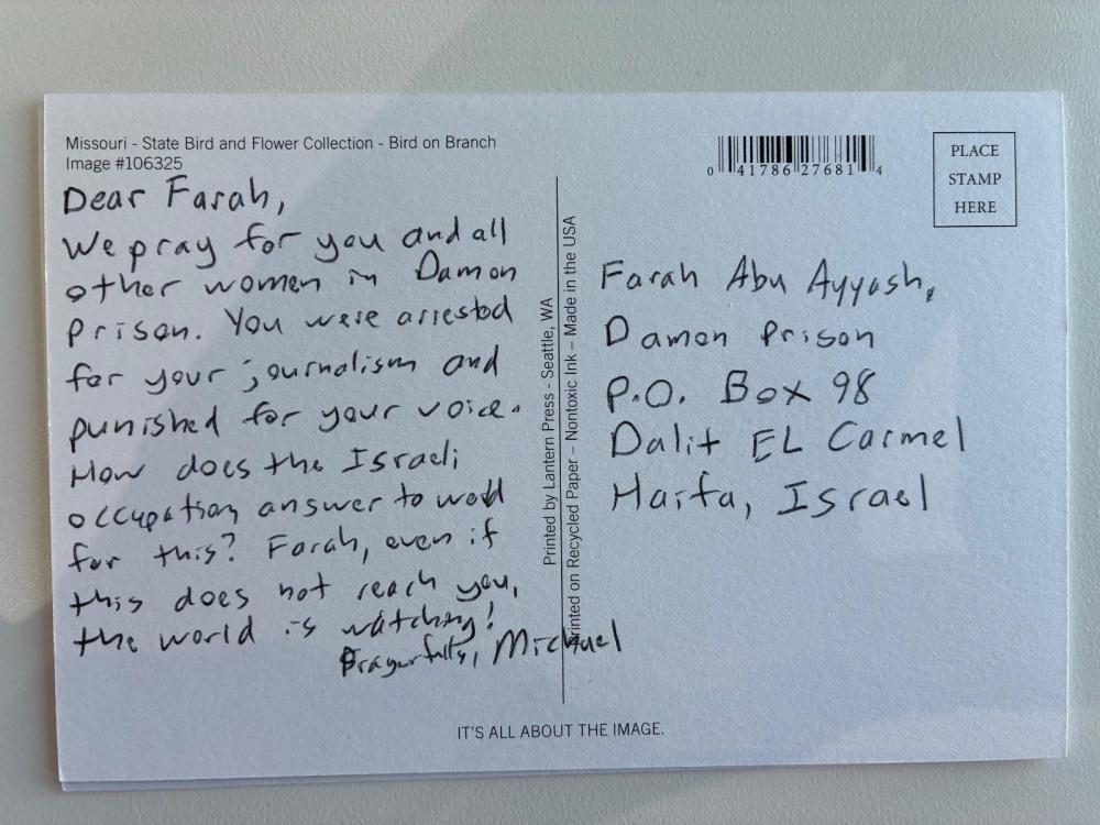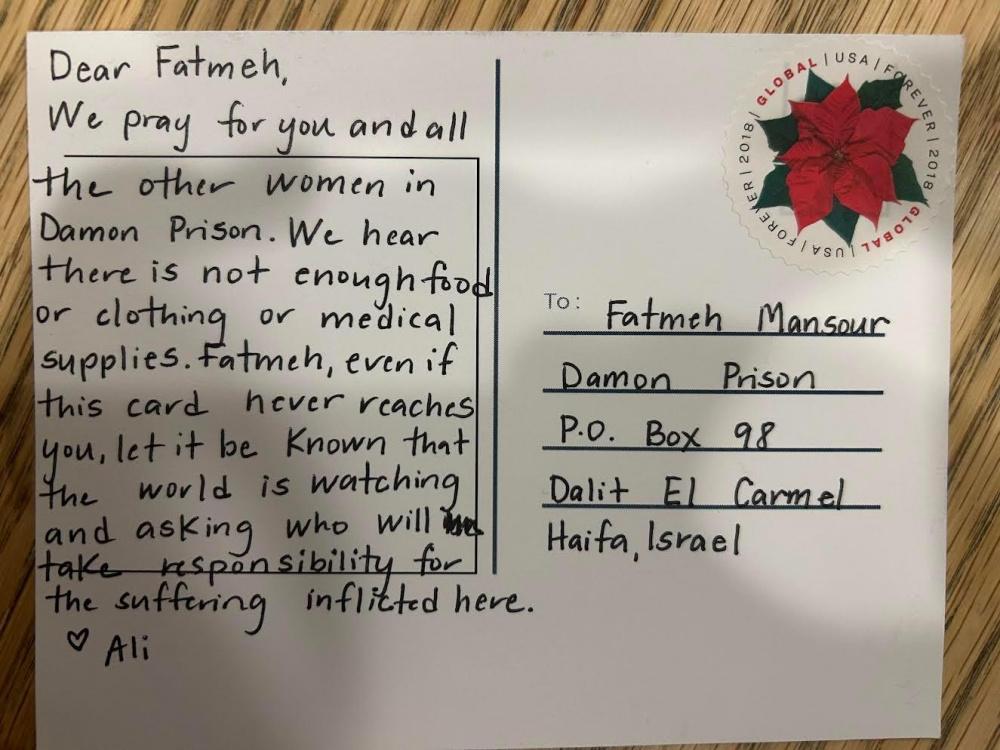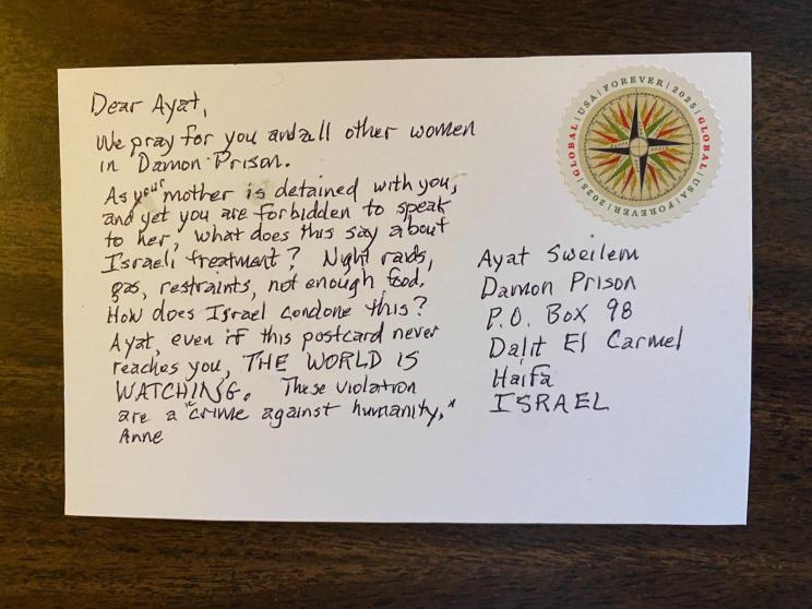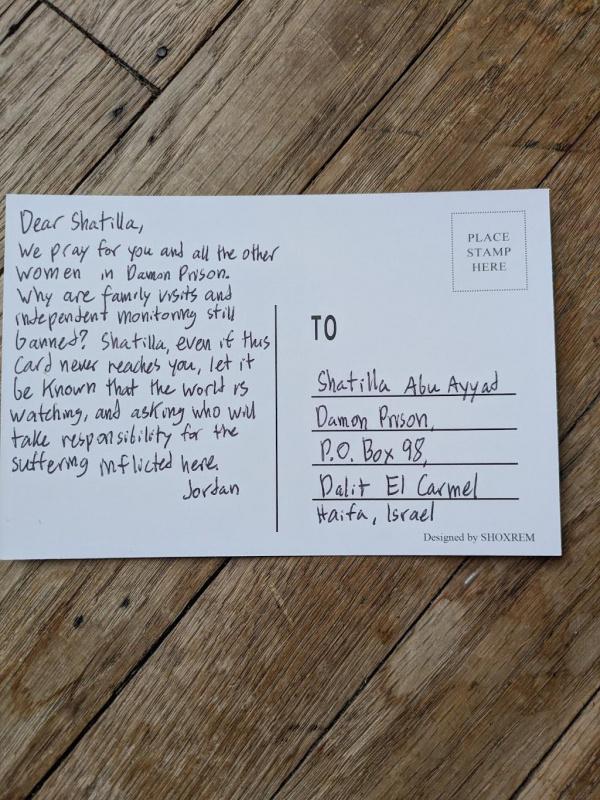 في حملة تضامنية بدأتها كنائس مختلفة تناصر الحق الفلسطيني من 15 ولاية أمريكية في بداية الصوم الأربعيني؛ قامت الكنائس التابعة لجمعية أصدقاء السبيل - أمريكا الشمالية (FOSNA) بإرسال أكثر من ألف بطاقة بريدية معنونة بأسماء الأسيرات اللاتي يقبعن في سجن الدامون، تستنكر في محتواها ما يعشنه من انتهاكات ممنهجة من تعذيب متواصل وحرمان من أدنى مقومات الحياة، ووسط أوضاع مأساوية وظروف غير آدمية، تعتبر انتهاكا للقانون الدولي، بما في ذلك اتفاقية جنيف ونظام روما الأساسي للمحكمة الجنائية الدولية، وترقى لأن تكون جرائم ضد الإنسانية، ومنها: الاحتجاز التعسفي، والتعذيب، والحرمان من محاكمة عادلة، والإيذاء الجسدي والنفسي، والعزل التام عن محيطهنّ الخارجي.