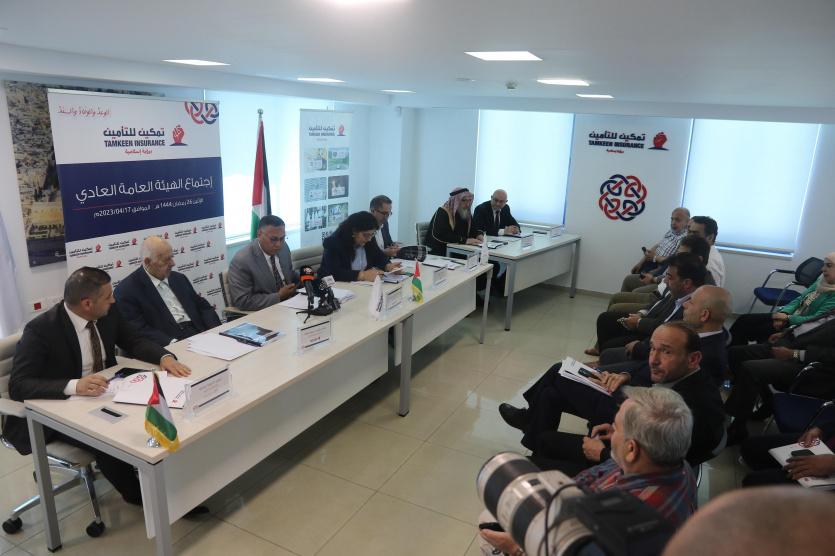 عقدت الهيئة العامة لشركة "تمكين الفلسطينية للتأمين"، اجتماعها العادي يوم الثلاثاء الموافق 21-4-2026، وذلك في مقر الشركة في رام الله، بحضور السيدة/ ليانا الاطرش ممثل مسجل الشركات، ومعالي الدكتور/ ماجد عطا الحلو رئيس مجلس إدارة الشركة، ومعالي السيد/ عزام عبد الكريم الشوا نائب رئيس مجلس الإدارة ورئيس مجلس إدارة مؤسسة إدارة وتنمية أموال اليتامى، وأعضاء مجلس الإدارة، وحشد من السادة المساهمين، وفضيلة الأستاذ الدكتور/ حسام الدين عفانة رئيس هيئة الرقابة الشرعية، إضافة إلى السيد/ رائد ابو العظام ممثل شركة التدقيق الخارجي "اتش، أل، بي فلسطين"، والاستاذ/ امجد قبها مدير عام الإدارة العامة للتأمين في هيئة سوق رأس المال الفلسطينية، والسيد / وفا عرفات مشرف مركز الإيداع والتحويل في بورصة فلسطين، والإدارة التنفيذية للشركة ممثلة بالسيد محمد الريماوي المدير العام.