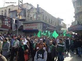 وجابت المسيرة، شوارع المدينة رافعين الأعلام الفلسطينية، مرددين الهتافات الوطنية المنددة بجرائم الاحتلال، والمشيدة بصمود المقاومة وشعبنا الفلسطيني.