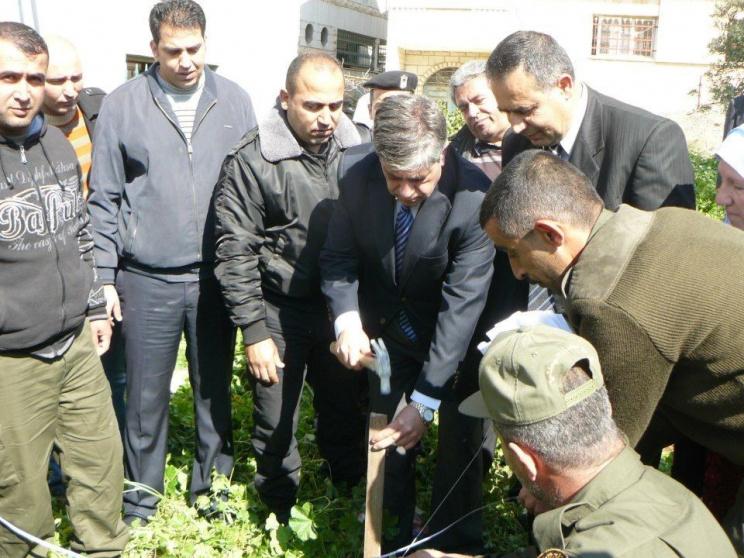المحافظ طوباسي واللواء الفارس يضعان حجر الاساس لمنزل عائلة مستورة في تياسير