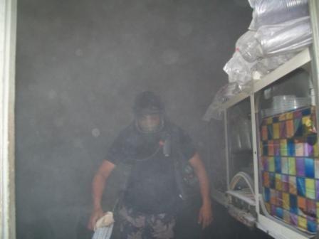 وذكر تقرير لادارة العلاقات العامة والاعلام في الدفاع المدني أن النيران كانت مشتعلة داخل المطعم في بعض المحتويات والممتلكات والمواد التموينية نتيجة التركيب الخاطئ لاسطوانة الغاز، وأخمدت الطواقم النيران قبل وصولها الى باقي محتويات المطعم.