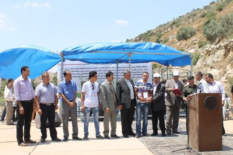 وفي كلمة الافتتاح اشاد د. اياد يعقوب المدير التنفيذي لمجلس الخدمات المشترك، بالجهود المبذولة من قبل محافظة سلفيت ومحافظها عصام ابو بكر وكافة الوزارات والمؤسسات المعنية والمختصة، للنهوض بواقع المحافظة وتعزيز صمود مواطنيها فوق اراضيهم رغم مضايقات ومنغصات الاحتلال اليومية، مؤكدا ان محافظة سلفيت هي الاكثر استهدافا وتضررا نتيجة ممارسات الاحتلال، وان هذا الاحتفال جاء تتويجا لجهود عديدة بذلت، وتأكيدا في يوم البيئة العالمي ان محافظة سلفيت عنوانا للصمود والازدهار.