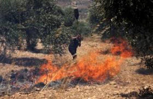 حريق يلتهم 100 شجرة زيتون غرب مدينة جنين