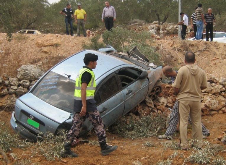 وذكر تقرير لإدارة العلاقات العامة والإعلام في الدفاع المدني أن مركبة من نوع هونداي إنحرفت عن مسارها لتسقط على جانب الشارع في أرض منخفضة، ما أدى لإصطدامها بأشجار الزيتون وإصابة ركابها ومحاصرتهم داخلها.