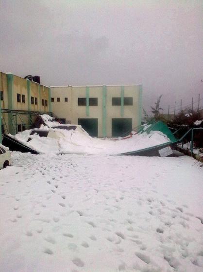 انهارت ظهر اليوم الثلاثاء  مظلة مديرية التربية والتعليم في سلفيت بالكامل فوق سيارات المديرية، بسبب تراكم الثلوج فوقها.