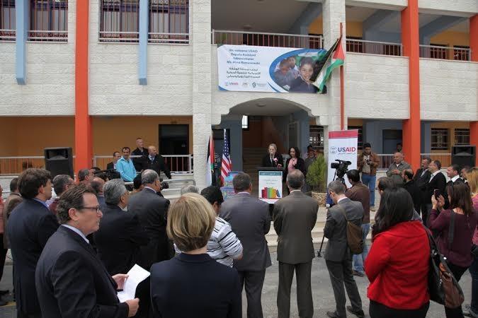 وتجولت السيدة رومانوسكي، المسؤولة عن عمل الوكالة الأمريكية في الشرق الأوسط، في المدرسة التي تم الانتهاء من ترميمها مؤخراً ضمن برنامج الحكم المحلي والبنية التحتية الذي تنفذه مؤسسة مجتمعات عالمية (CHF سابقاً) وبتمويل من الوكالة الأمريكية للتنمية الدولية (USAID) بقيمة 430 ألف دولار أمريكي، حيث تم بناء ثلاثة طوابق جديدة للمدرسة، واضافة ست صفوف دراسية جديدة، تخدم أكثر من خمسين طالب وطالبة. ومن المتوقع أن تستقطب المدرسة المزيد من الطلاب خلال الفصل الدراسي القادم.