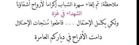 في حديث لـ"راية" مع عدد من الشبان الذين قاموا بالغاء حفلة السهرة او تأجيل الزفاف كان السبب واضحا وهو" احتراما لدماء الشهداء والمأساة التي لحقت باهلنا في غزة".