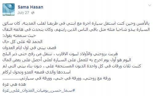 2- كيف غطت سما الصحفية العداون على غزة، ما هو سر كلماتك القريبة للقلب التي تكتبيها على صفحتك على الفيسبوك؟