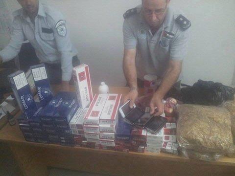وأفاد مدير الضابطة في المحافظة النقيب عبد الكريم بسايطة، في بيان صحفي، بأن المواد التي ضبطت عبارة عن 10 أجهزة 'موبايل' ذكية من نوع (جالاكسي S5)، و45 'كروز' دخان، و5 كيلو معسل، و6 كيلو تمباك، و8 علب مستحضرات تجميل.