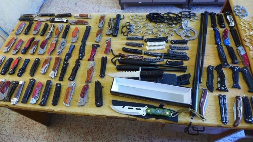 نفذت الشرطة اليوم الاثنين حملة على المحلات والبسطات التي تبيع السلاح الابيض في مدينة طولكرم.