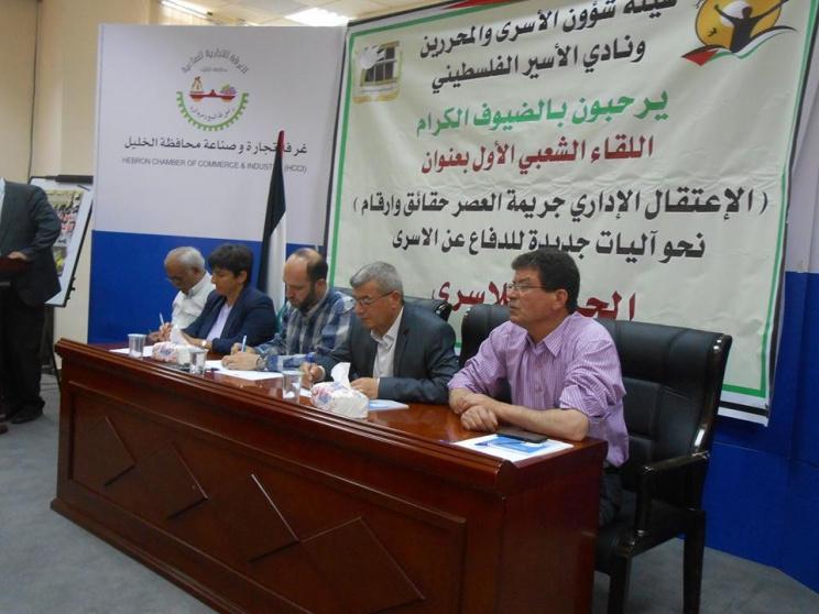 نظمت هيئة شؤون الأسرى والمحررين ونادي الأسير الفلسطيني، اللقاء الشعبي الأول لدعم وإسناد الأسرى الإداريين تحت عنوان "الاعتقال الإداري جريمة العصر حقائق وأرقام"، اليوم الأربعاء، في الخليل.