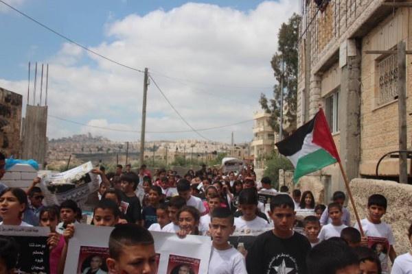 قامت مؤسسة 'سوا لتنمية وتطوير المجتمع' في قرية حزما شمال شرق القدس، اليوم الخميس، وقفة ومسيرة تضامنية مع الأسرى في سجون الاحتلال، خاصة الأسرى المضربين عن الطعام والأسرى المرضى، وذلك ختاما لمخيمها الصيفي التاسع، حيث جابت المسيرة شوارع البلدة، بمشاركة مئات من الأطفال.
