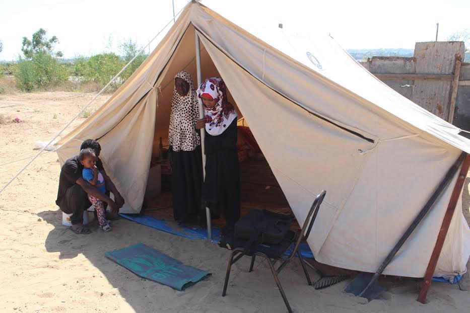 استلمت أم رامي خيمة من الأونروا بعد خروجها من مدرسة الشوا ونصبتها في منطقة عند مدخل مدينة بيت حانون، وبعد ساعات طردهم افراد الأمن الوطني في غزة باعتبار المكان أمني يتبع الأجهزة الامنية ويمنع السكن والتواجد فيه، واستقبلها فاعل خير داخل بيته مؤقتا بمنطقة عزبة بيت حانون.