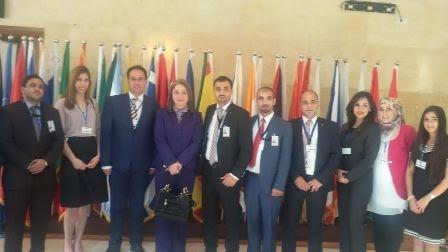 وضم وفد الخارجية كل علاء زعول وسعاد صبح  وعضو اللجنة الاعلامية للمؤتمر ايهاب عمر، ورزان لفتاوي ويزن قنداح، واحلام طه ودرار حسن وسماح الخليلي ومحمود الشيخ ورامي عريقات وايمن نمر ، ودينا الهماش.