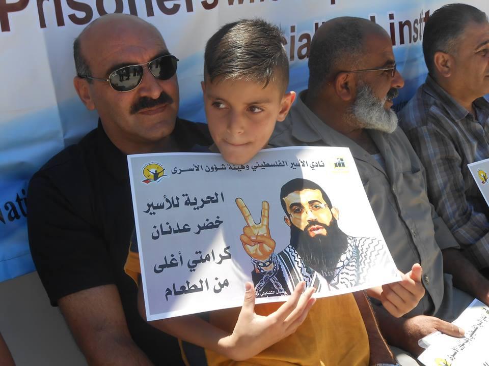 وطالب مدير هيئة شؤون الأسرى والمحررين في الخليل إبراهيم نجاجرة تكاتف جميع المؤسسات في مساندة ودعم الأسير خضر عدنان، موضحا:" نحن في شهر رمضان، وهذا الحضور المتواضع لا يعبر عن قيم وأخلاق شعبنا، ونأمل أن تكون الأعداد أكبر وتليق بقضية الأسرى".