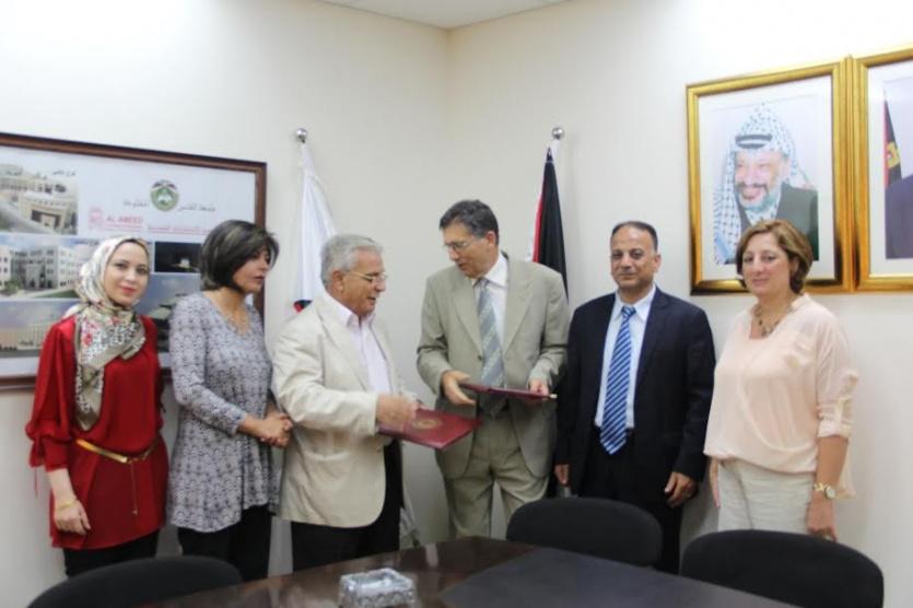 وحضر توقيع الاتفاقية د. مروان درويش نائب رئيس الجامعة للشؤون الإدارية، ود. إسراء أبو عياش مدير فرع الجامعة بالعيزرية، ود. آلاء الشخشير مساعد رئيس الجامعة لشؤون المتابعة، وأ. لوسي حشمة مدير دائرة العلاقات العامة.