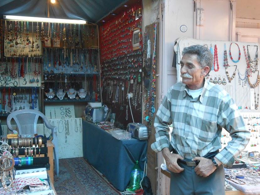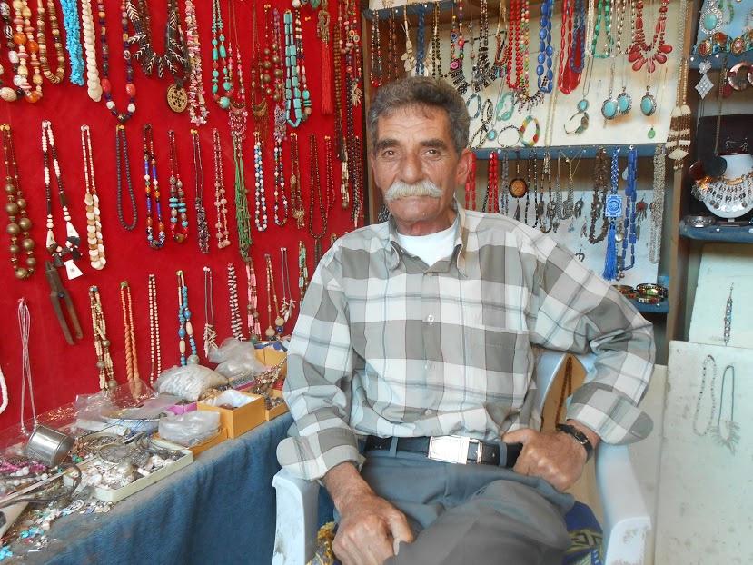 مصباح الحموري "أبو تاج"، ولد بعد عامين من عام النكبة الفلسطينية ، يبلغ من العمر (65 عاماً)، يجلس بشكل دوري في دكانته التي لا تتجاوز مساحتها مترين مربع في البلدة القديمة من مدينة الخليل، ماسكاً بيده كماشته الصغيرة وبعض الخرزات والحجارة لصناعة المسابح والأساور والقلائد وغيرها من الاكسسوار اليدوي التراثي.