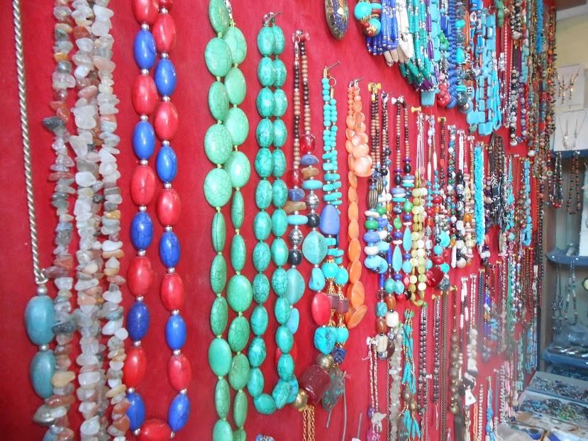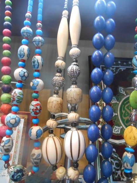 آلاف القطع التراثية معلقة ومعروضة للبيع في محل "أبو تاج"، جميعها من صنع يديه على مدار خمس عقود. يقول الحموري لـ"رايــة"، حرفتي كبضاعة سياحية عربية فلسطينية خليلية، جميعها عملا يدويا، صنعته بيدي من سناسيل، أحرف، حلق، أساور، وغيرها، باستخدام حجر طبيعي، وحجر من أفغانستان وآخر أردني، وأيضا من عظم الجمال".